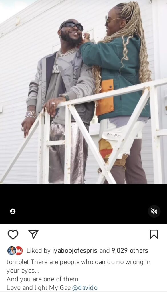 Tonto remarked that Davido can do no wrong in her opinion after sharing a snapshot of the duo taken after Davido’s concert in Qatar.