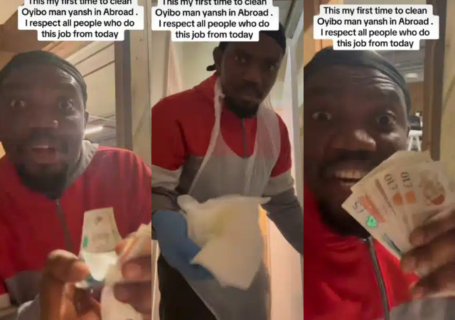 In a video captioned, “This is my first time cleaning an oyinbo man’s Yanch. I respect people who do this job from today,” the man displayed the money.