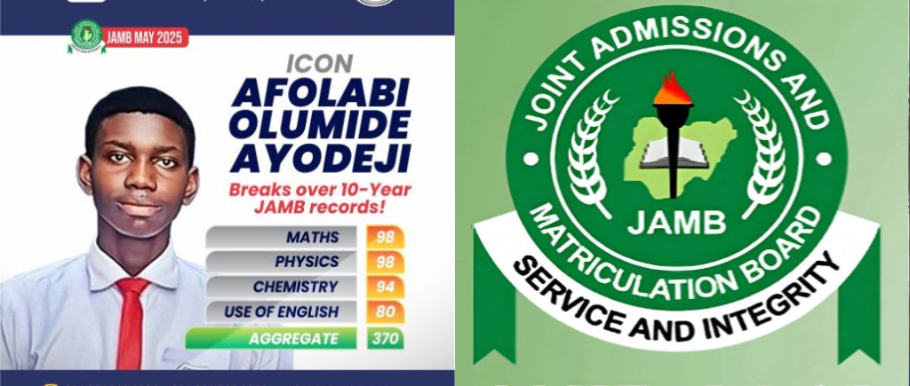 A major milestone has been achieved in Nigeria’s education sector as 15-year-old Afolabi Olumide Ayodeji has set a new record in the Unified Tertiary Matriculation Examination (UTME), scoring an extraordinary 370 — the highest result recorded in over a decade.