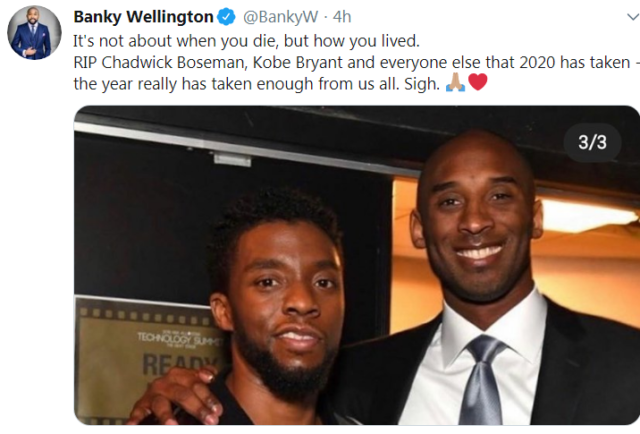 Banky took to his twitter handle his emotions towards the death of Chadwick Boseman, Kobe Bryant and many others who lost their lives this year.