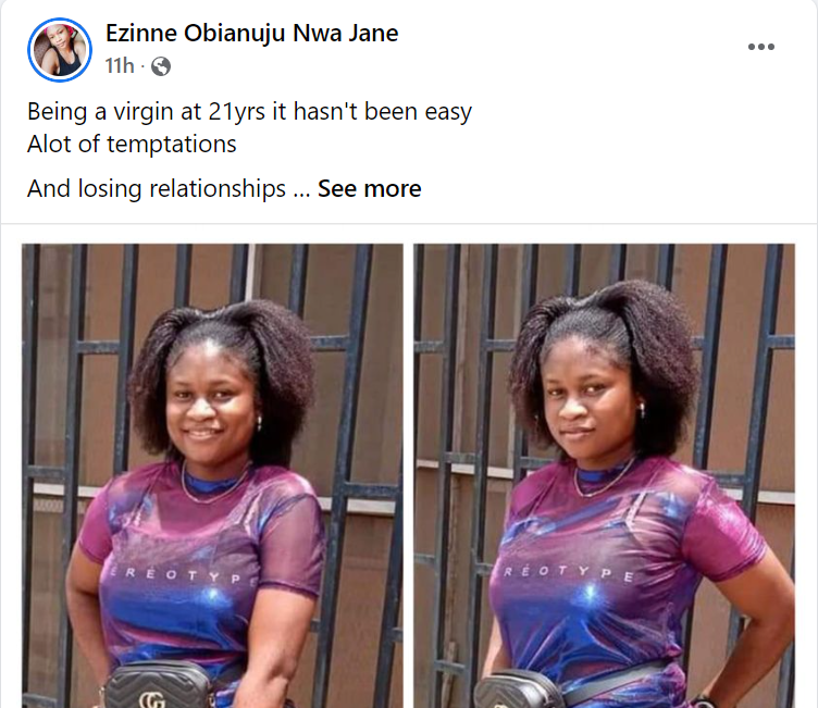Ezinne Obianuhu Nwa Jane who revealed that she’s been tempted so many times, also said that she has lost so many relationships because she’s still a virgin.
