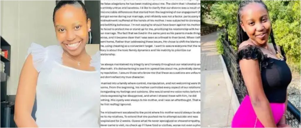 “The fact that we lived in the same yard as his parents made things worse, and it became clear that I was seen as a threat to their bond. When I left & went home, rather than addressing these issues, he chose to shift the blame onto me, using cheating as a convenient target. I want to assure everyone that the real story is about the toxic family dynamics and his inability to prioritise our relationship…”