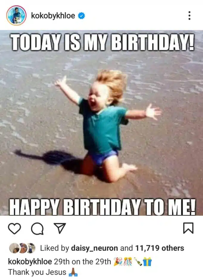 Fans and colleagues, particularly ex BBNaija stars, have swarmed her comment section with their various wishes and prayers as they commemorate with Khloe.