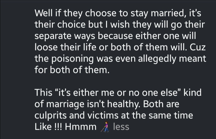 “WTF… Y’all family and friends shouldn’t skip the fact that one of the couple has a low functioning organ and it was alleged it’s a result of poisoning from the home because of a suspected “cheating”.