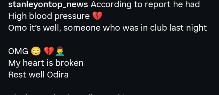 According to a report shared by Stanley Ontop, the death is currently unconfirmed but has swiftly gone viral, leaving fans and industry colleagues in shock.