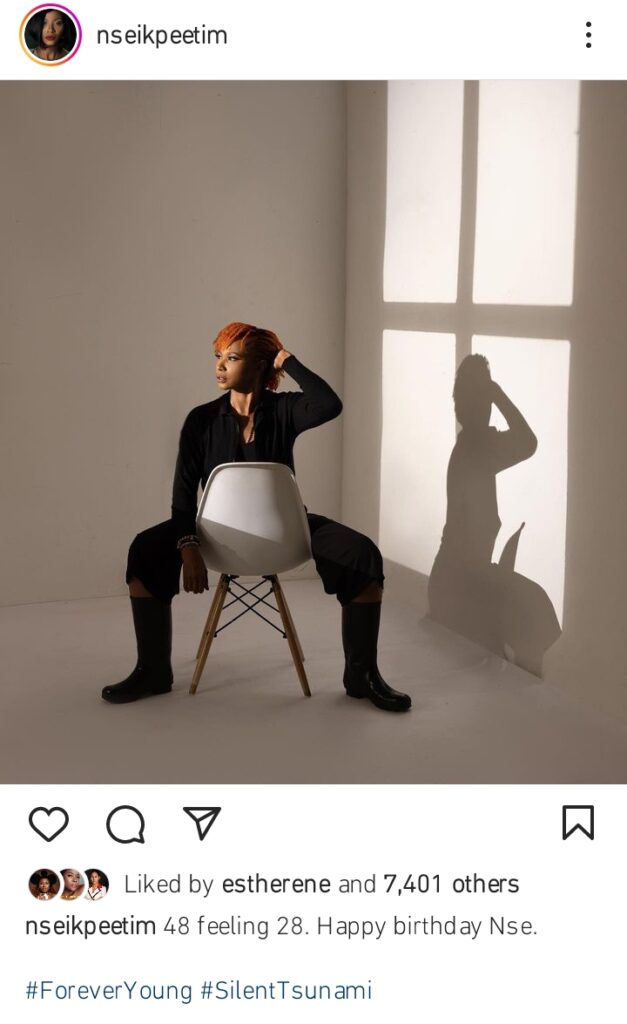 Taking to Instagram, Nse shared a photo of herself sitting on a chair.