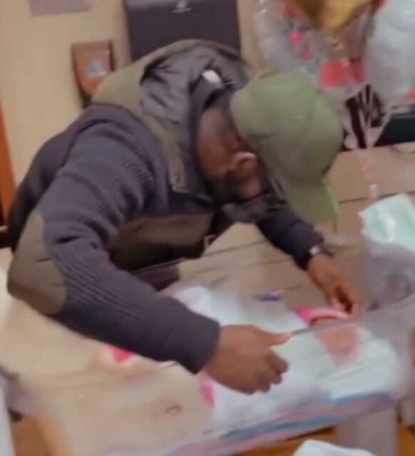 The excited and proud father in the video, revealed that his wife gave birth to a beautiful baby girl.