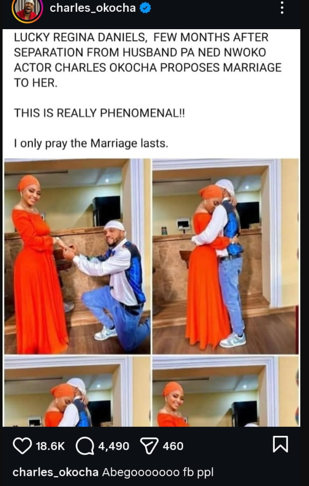 The speculation began after a Facebook post alleged that the actor had proposed to Regina following reports of her separation from her husband, Ned Nwoko. The post praised the alleged development and wished the supposed relationship well.