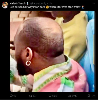 The Abuja-based barber turned to his official X page to ridicule Davido, uploading a snapshot of the singer’s bald hair.