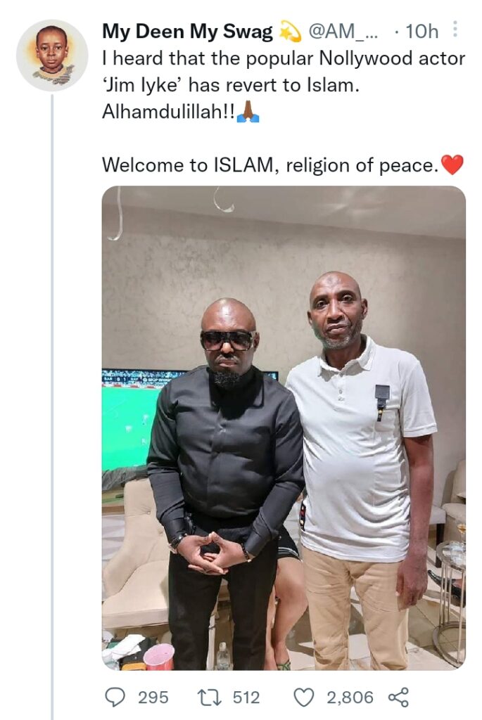 While congratulating him, he said, “”I heard that the popular Nollywood actor Jim Iyke has revert to Islam. Alhamdulillah! Welcome to Islam, religion of peace. We welcome you wholeheartedly”.