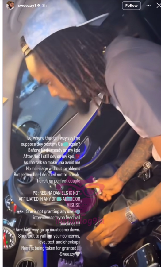 In a post shared via his Instagram Stories, Sweezzy addressed recent comments and rumors surrounding Regina’s marriage and online presence. He criticized individuals who expected Regina to stop posting about her husband, Senator Ned Nwoko, amid ongoing speculation, and insisted that the actress remains focused and unaffected.