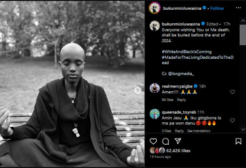 Bukunmi responded to the news by posting black and white photographs of herself on her Instagram account, accompanied by the following statements: