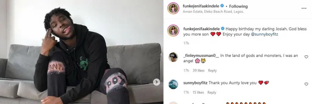 Funke Akindele wrote: Happy birthday my darling Josiah. God bless you more son. Enjoy your day @sunnyboyfitz.