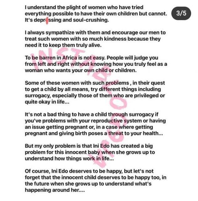 He then advised women who want to go through the surrogacy process just like Ini Edo to do it with men they like so that the child can have and know their father