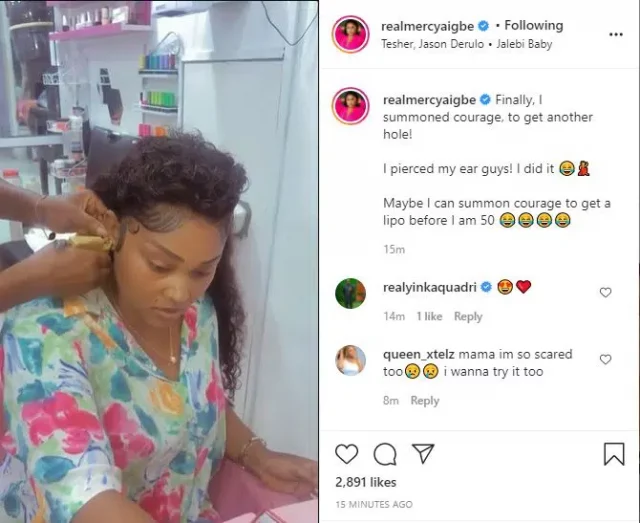 The 43-year-old actress revealed this on a post shared to her Instagram page and after she summoned the courage to pierce her ears.
