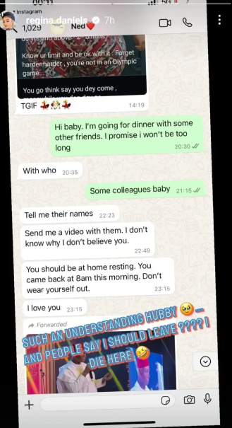 Regina captioned the screenshot: “SUCH AN UNDERSTANDING HUBBY AND PEOPLE SAY I SHOULD LEAVE????! DIE HERE.”