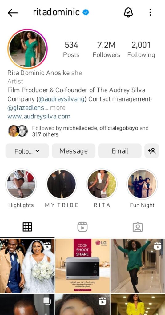 Her Instagram bio has been changed from Rita Dominic to Rita Dominic Anosike.