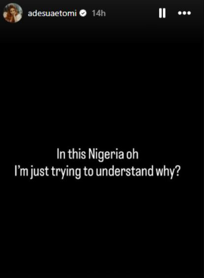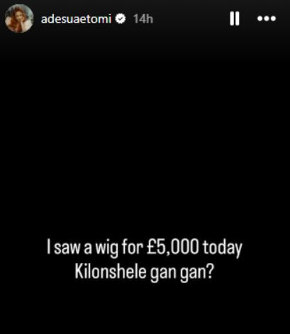 “In this Nigeria oh. I’m just trying to understand. I saw a wig for £5,000 today. Kilonshele gan gan,” she wrote on her Instagram story on Monday.