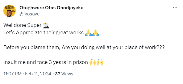 - I Go Save inquired on X if individuals who insulted the Nigerian football team were also doing well at their workplaces.
