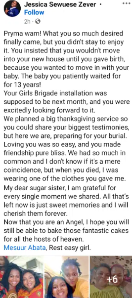 “Pryma wam! What you so much desired finally came, but you didn’t stay to enjoy it. You insisted that you wouldn’t move into your new house until you gave birth, because you wanted to move in with your baby. The baby you patiently waited for for 13 years,” she wrote.