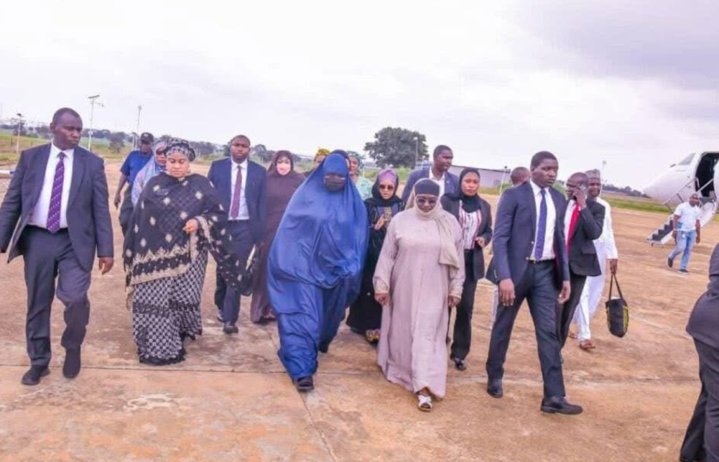 The move took place on Sunday, July 28, 2025. The family arrived at the Nigerian Air Force Base in Kaduna and was warmly received by top officials, including Kaduna State Deputy Governor Hadiza Sabuwa Balarabe and House of Assembly Majority Leader Munira Tanimu.