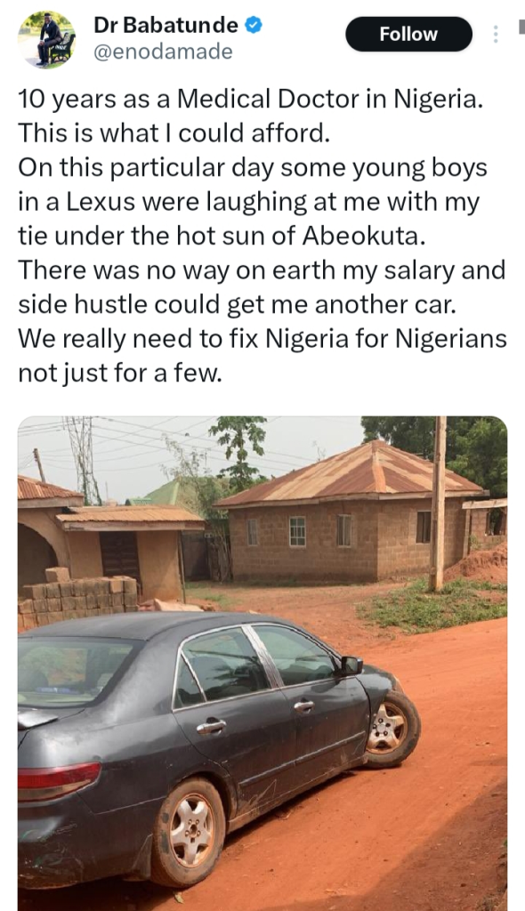 - Dr. Babatunde, a Nigerian doctor, shared his financial struggles on X (formerly Twitter).