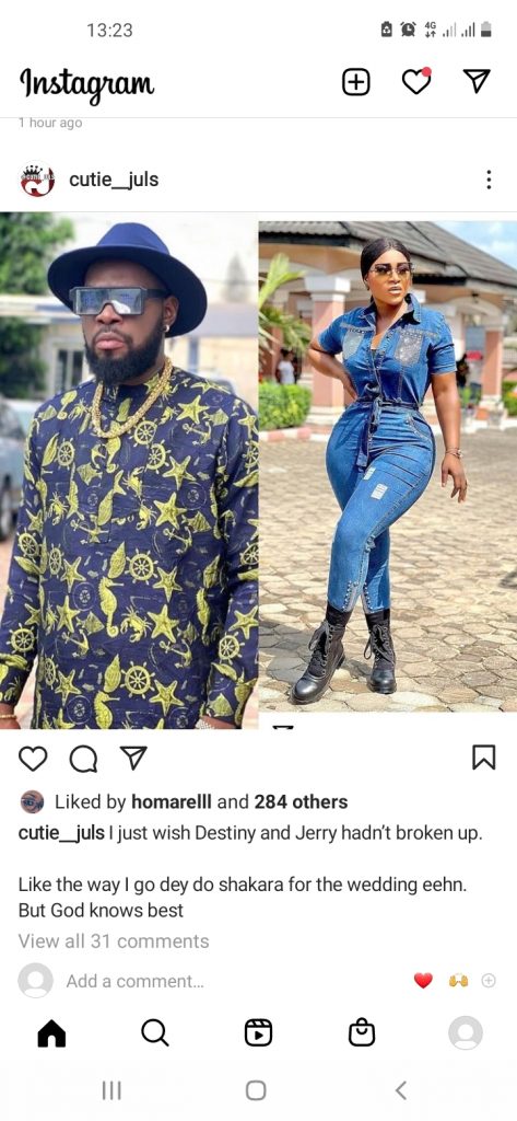 Jerry Williams and Destiny Etiko looked good and happy together in the photos and videos she had shared on the internet but that happiness couldn’t last as the relationship has allegedly ended in tears.