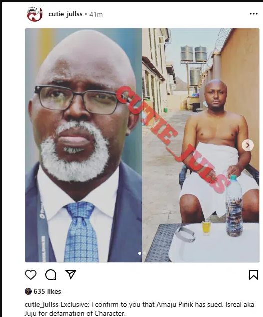 It has been alleged in an exclusive report by an Instagram blogger, Cutie_Juls that Israel was slammed with a defamation lawsuit by Amaju Pinnick.