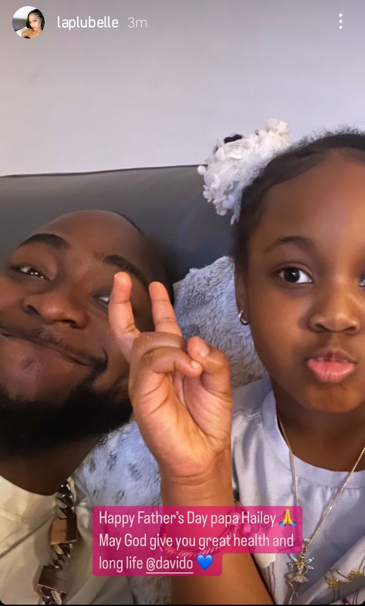 Davido took to his story to reshare Chioma’s father’s day tribute to him.