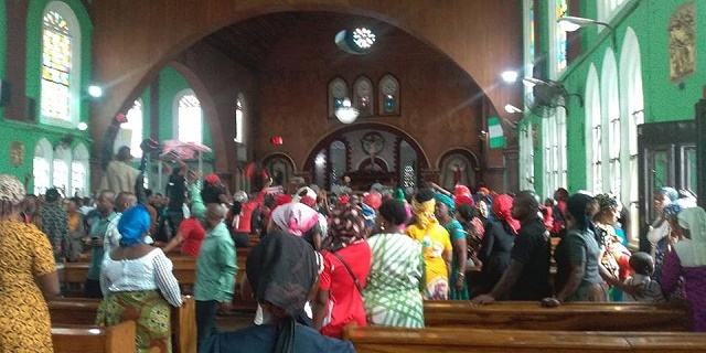 There was pandemonium at Christ the King Cathedral, (CKC) in Aba, Abia state today after members of the proscribed secessionist group, Indigenious People of Biafra IPOB, disrupted church proceedings following the priest’s call for the church members to pray for a peaceful 2019 general elections.