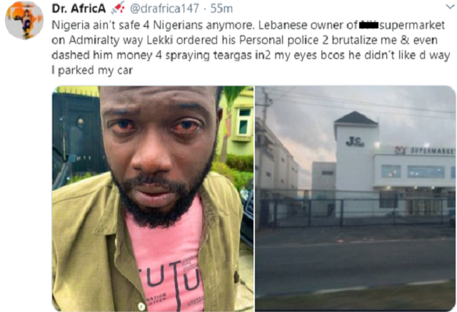 Angry Nigerian doctor took to Twitter to accuse the Lebanese owner of a supermarket in Lekki of brutality.