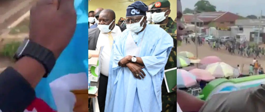 In a dramatic display of anger, some demonstrators were seen tearing apart the flag of the All Progressives Congress (APC), the president’s party.
