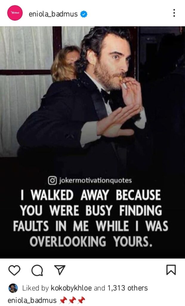 Eniola Badmus revealed that she walked away from someone because the person was busy finding faults in her. Meanwhile, she was overlooking the said person’s faults.