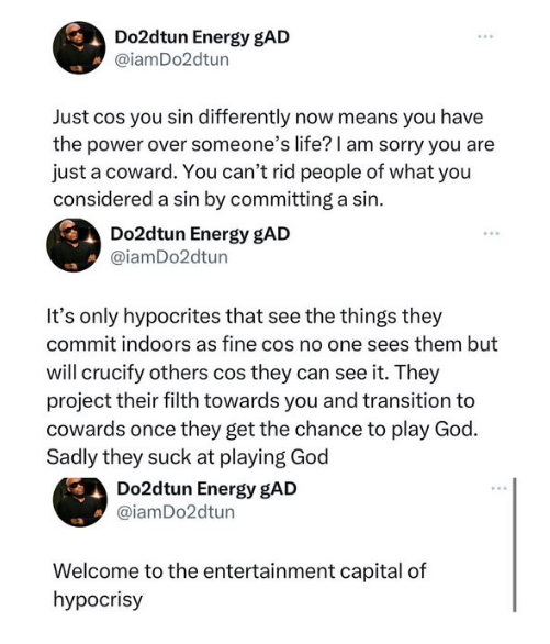 In his post on X, Dotun stated that differing sins do not justify taking someone else’s life.