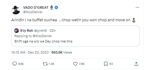 The user was called a “Arindin” by Kizz Daniel as the conversation swiftly became heated.