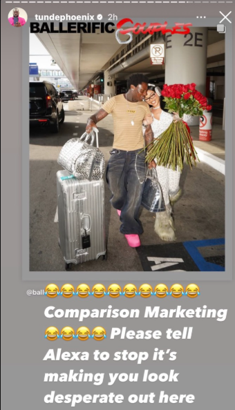 In one of his posts, Baba T included a photo of Asake and India Love, captioning it, “Comparison Marketing. Please tell Alexa to stop, it’s making you look desperate out here.”