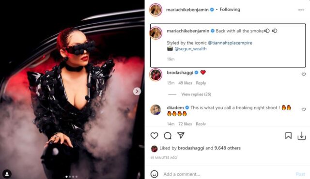 Upon her return to Instagram, Maria shared beautiful photos of her donning in black outfit announcing that she’s back with the smoke.