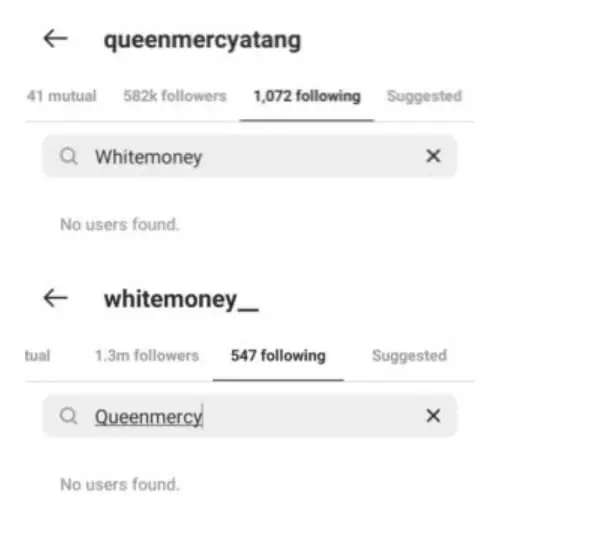 Reality TV star, Hazel Oyeze Onou, widely known as Whitemoney and his closest housemate while in the house, Queen Mercy Atang have blocked each other on Instagram.