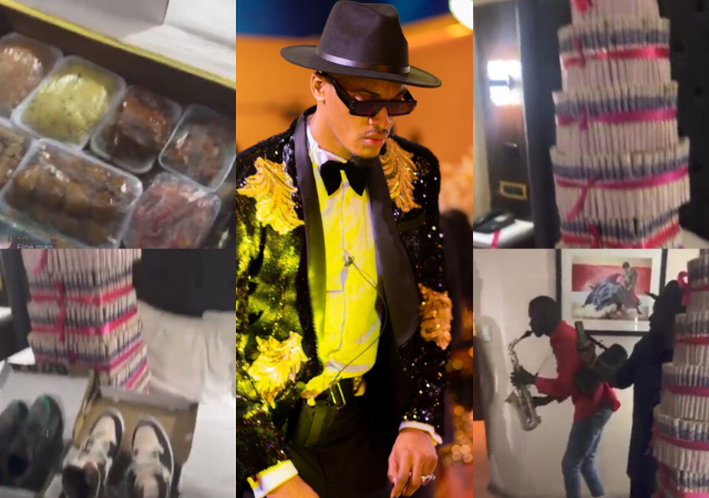 His fans surrounded him as a saxophonist played some of his favorite songs. Groovy received a huge money cake, wines, sneakers, shoes, a tray of food, and lots more.