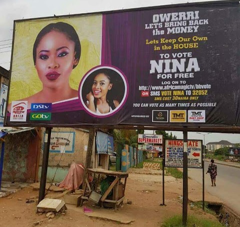 #BBNaija -Fans Support Nina with A Giant Bill Board in Owerri [Photos]
