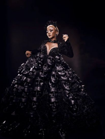 The ex-Big Brother Naija housemate was styled by celebrity stylist Tiannahplacempire CEO, Toyin Lawani, and she also claimed that her black skull-filled outfit costs $ 10000. (Almost 5m).