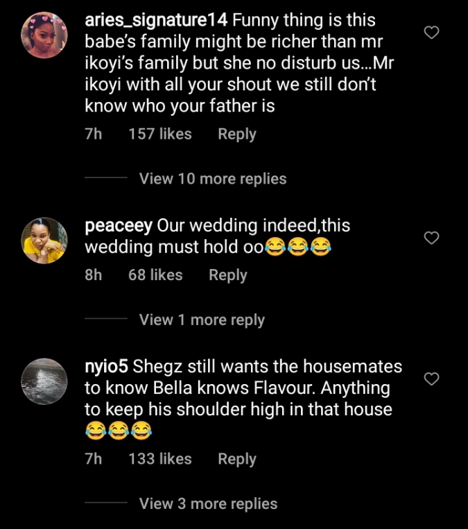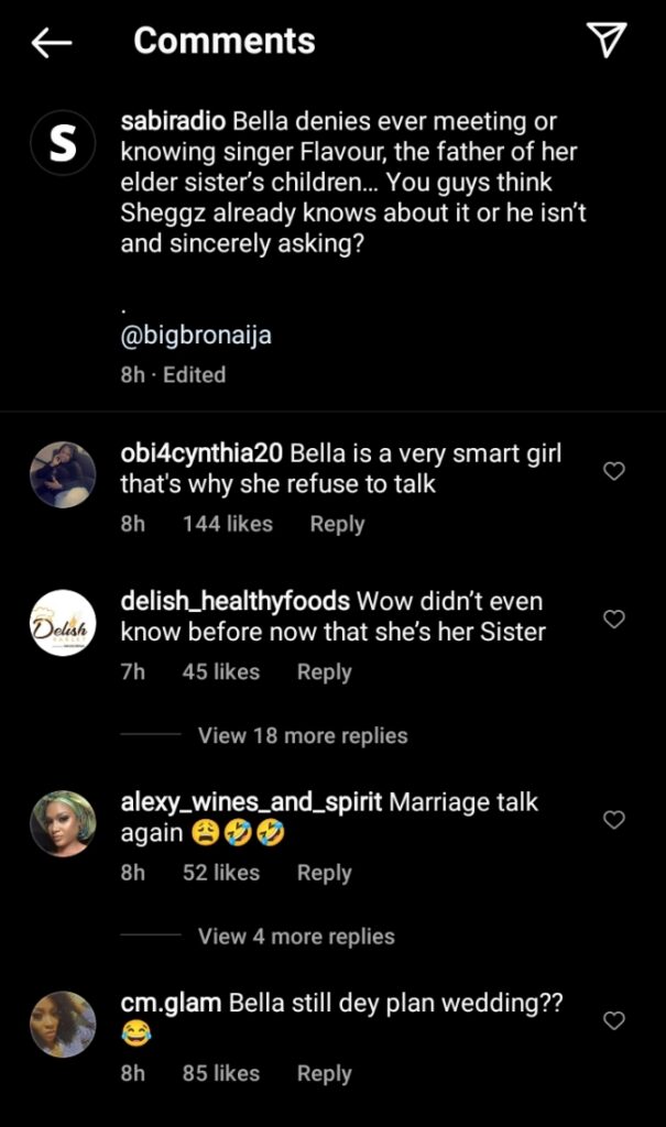 In a conversation between Bella and her love interest, Sheggz, he quizzed Bella on the backgrounds of Flavour.