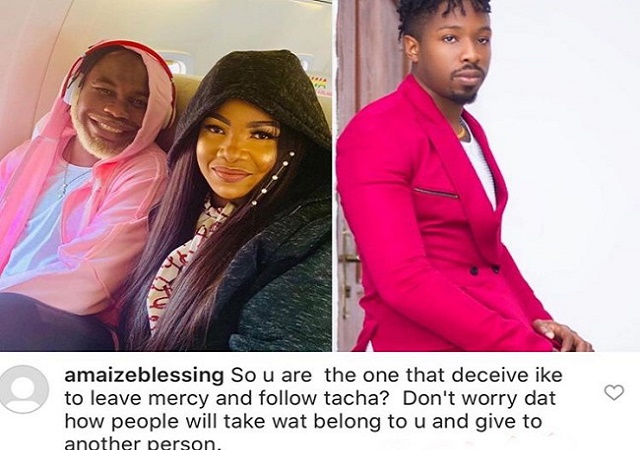 The fan accused Slimcase of deceiving Ike to leave Mercy and follow Tacha. Slimcase responded to the comment stating that Ike left mercy and followed Grace (Tacha).