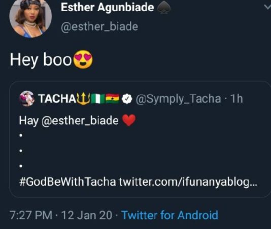 #BBNaija: Tacha and Esther Celebrate One Another On Twitter