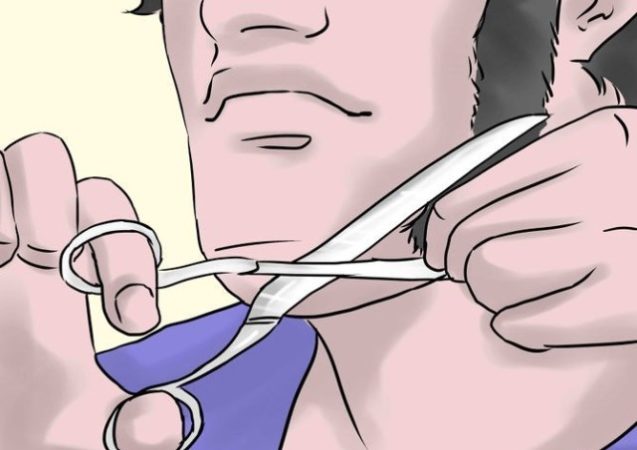 Lightly clip the hairs that are poking out of the comb on the side opposite of your face to your desired length.