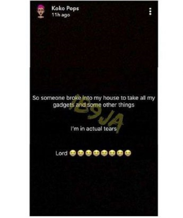 “So someone broke into my house to take away all my gadgets and some other things. I’m in actual tears. Lord,” she wrote;