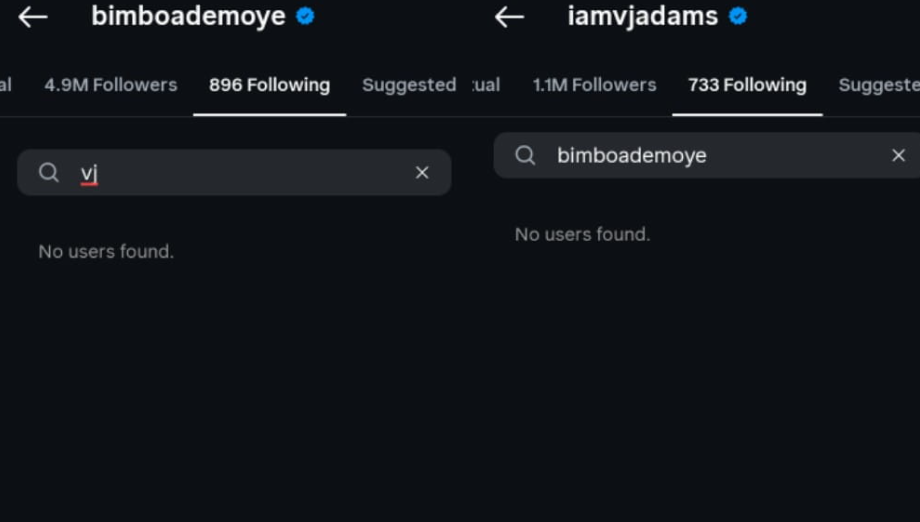 Bimbo Ademoye and VJ Adams Unfollow Each Other on Instagram