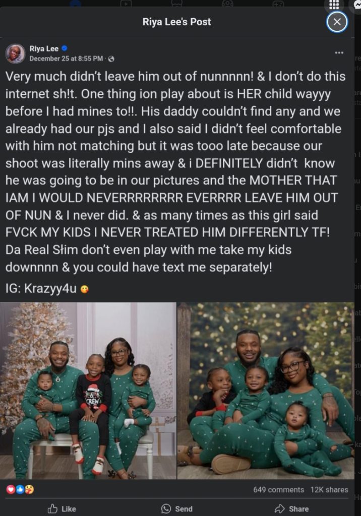 In her post, the mother expressed frustration over her son being left out of the family’s festive coordination, accusing the couple of failing to include him intentionally.