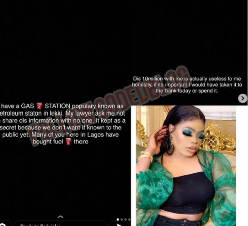 Cross dresser Bobrisky has disclosed that he has a gas station in Lekki in addition to the hotel he recently bought bragging about having money after being called out for borrowing someone’s money to show off.