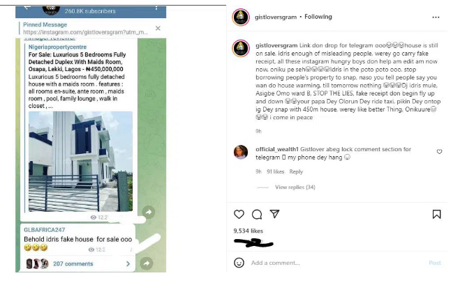 “Link don drop for telegram ooo😂😂😂house is still on sale, idris enough of misleading people, werey go carry fake receipt, all these instagram hungry boys don help am edit am now now, oniku pe seh😂😂😂😂Idris in the poto poto ooo, stop borrowing people’s property to snap, naso you tell people say you wan do house warming, till tomorrow nothing 😂😂😂Dj idris mule, Asigbe Omo ward B, STOP THE LIES, fake receipt don begin fly up and down 😂😂your papa Dey Olorun Dey ride taxi, pikin Dey ontop ig Dey snap with 450m house, werey like better Thing, Onikuure😂😂😂 i come in peace”